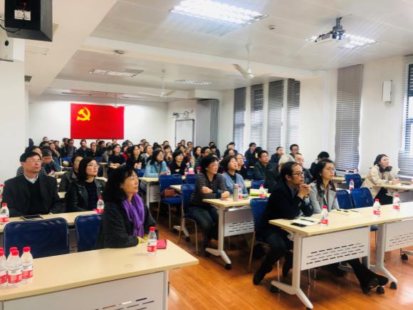 在学院下班半学期工作方面,顾伯洪经理通报了学院上交学校的党政班子目标责任书、一流学科进展报告、指标、学院预算、纺织一流学科人才培养战略研讨会、2018世界纺织服装教育大会、国家自然基金申报、学院场地调整、员工工作等内容。最后他希望全院师生齐心协力、攻坚克难、共创佳绩。