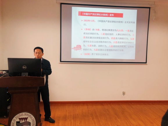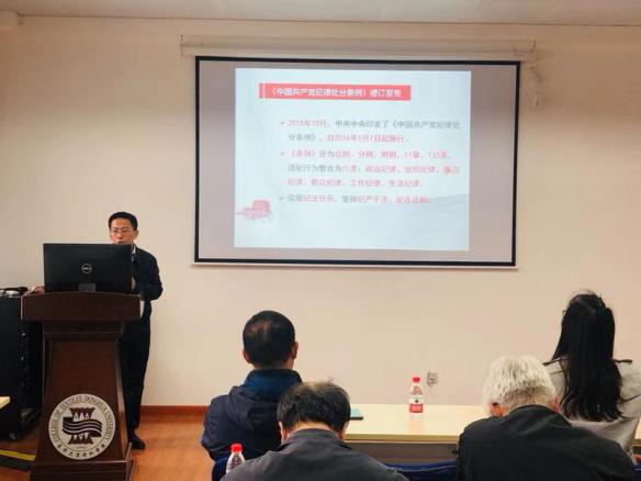 在修订内容部分,王新厚书记结合案例分别详细解读了总则,分则(包括政治纪律、组织纪律、廉洁纪律、群众纪律、工作纪律、生活纪律),附录中新增、修改、整合的内容,让使全体党员更加充分地了解《中国共产党纪律处分条例》。他希望全体党员坚持以习近平新时代中国特色社会主义思想为指导,深入认真学习条例,不断增强“四个意识”自律意识,严格要求自己,在各方面更好地落实社会主义核心价值观要求发挥党员的先锋模范作用,促进学院不断向高质量发展。