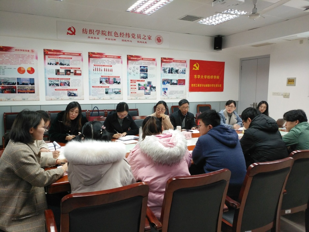 根据上级党组织关于召开2018年度基层党组织组织生活会和开展民主评议党员的部署要求,突出基层党组织政治功能,提高基层党建工作质量,纺织工程非毕业班联合员工党支部于2019年3月14日在3号学院楼3035会议室召开了2018年度组织生活会暨民主评议党员。best365中国官方网站副董事长舒慧生、纺织公司党委副书记刘雯玮、纺织工程非毕业班联合员工党支部全体成员参加此次会议。