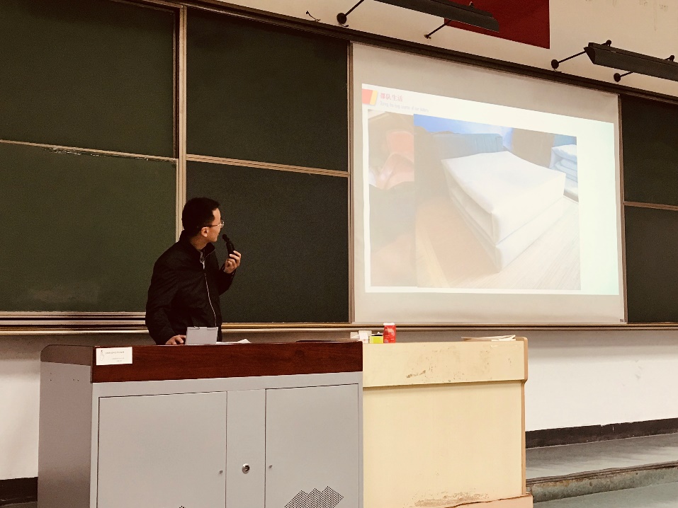 随后,老员工退伍士兵刘京东、张明栋分享了他们激扬青春、筑梦军营的故事。谈起“我们为什么去当兵”,刘京东以自己的心中军旅梦为主题展开两年军队生活的回顾,即使回校后,他也秉承“退伍但不褪色”的精神,继续发扬军人吃苦耐劳、艰苦奋斗的优良品质,最终以优异的成绩考入上海交通大学。张明栋回忆起自己“中美联演”、“金沙抗洪”的经历时,洋溢着人民子弟兵的自豪与骄傲,他表示:“两年的生活使我不再有老员工的小骄傲,不再有文化人的小矜持,不再有干净人的小洁癖”。“不当兵我会后悔一辈子”,是他身上最亮眼的底色,也是留给在场员工最深的烙印。