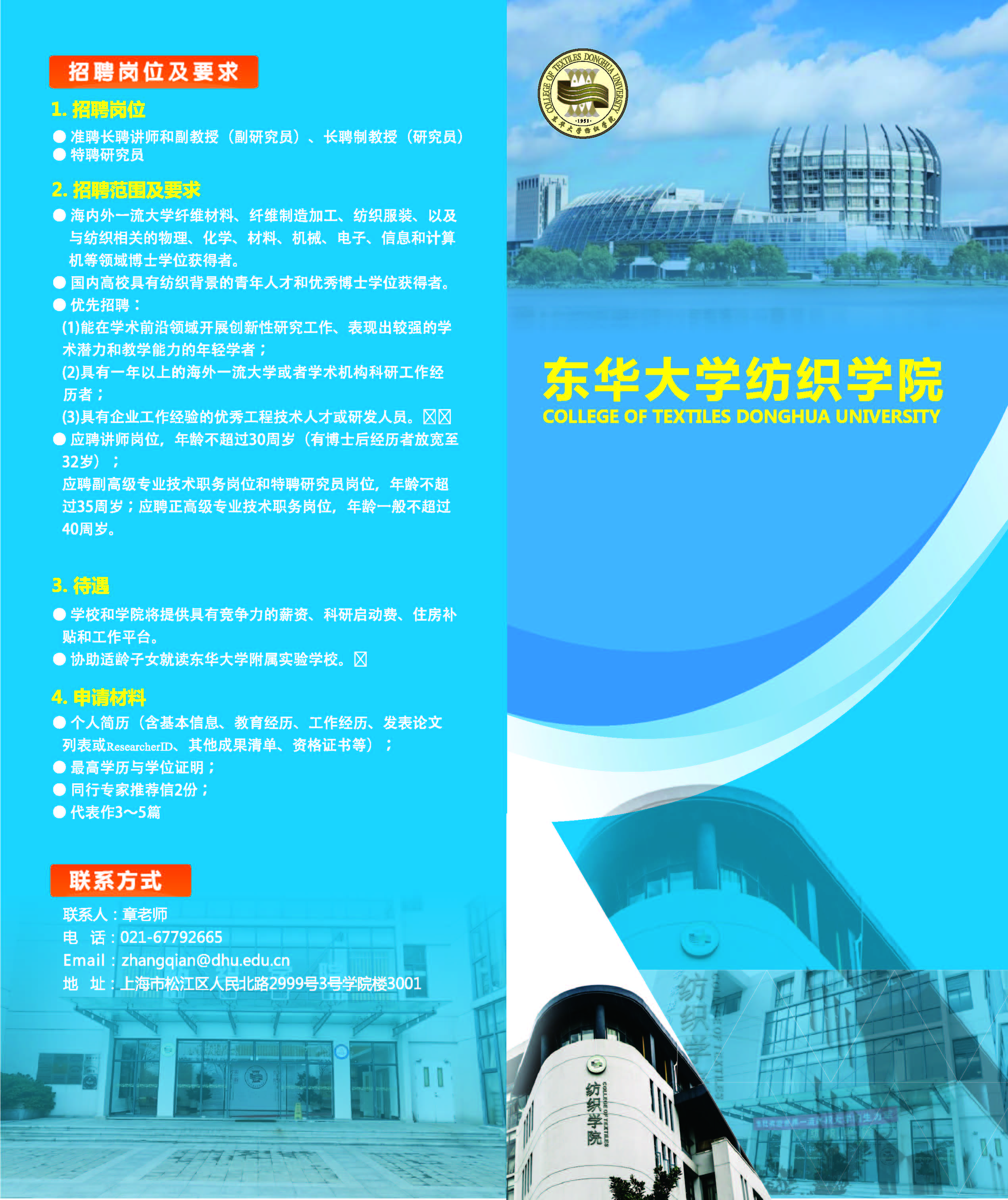 高校毕业季来临,面对紧俏的高层次人才市场,对用人单位而言,激烈的竞争不言而喻。在纺织公司党委书记王新厚教授的带领下,由院办主任章倩老师、院办科研秘书赵元老师组成的人才招聘小组开展了"走出去,引进来"人才招聘系列活动。