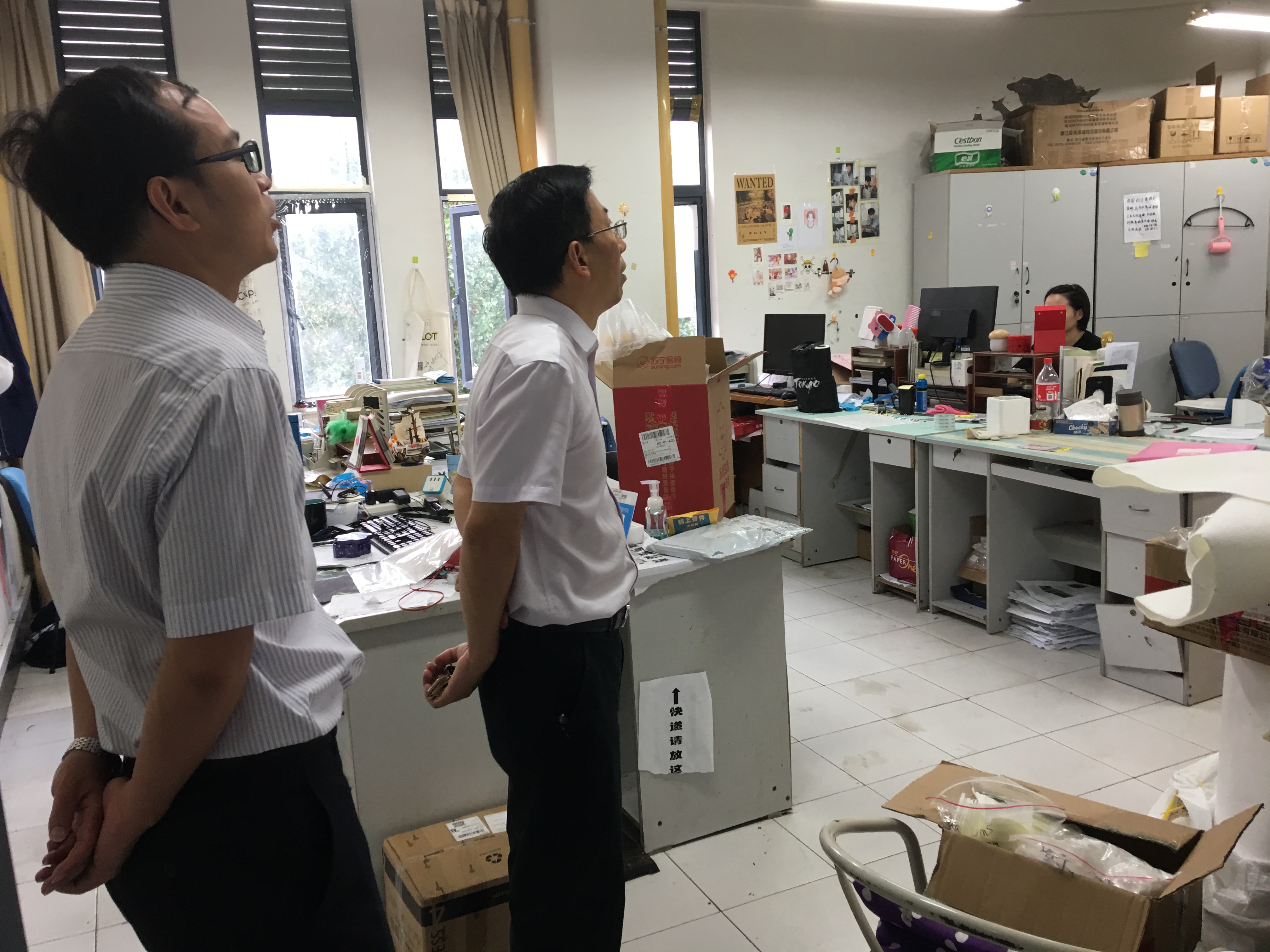为确保学院实验室安全,迎接新学期,纺织公司安全工作小组于8月29日上午新学期第一天开展了实验室和员工工作室安全现场检查。王新厚书记带队对学院楼实验室、工作室和实训楼实验室进行安全检查,王富军副经理、刘雯玮副书记及安全工作小组成员陪同检查。
