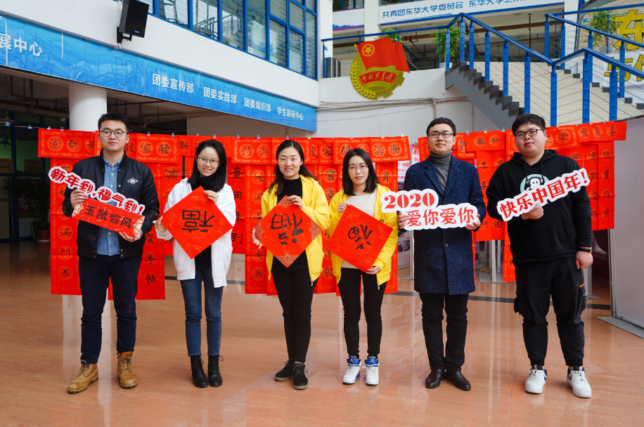 大厅内,人头攒动,师生们热情洋溢,有的挥舞翰墨体验一把书法魅力,有的驻足观看品赏一联书法之美,有的争先恐后为获一副新春桃符,一派喜气洋洋、温暖祥和。在人群中有这样几位特殊的观众,他们是东华的职工,值此新春佳节,同学们教他们写“福”字,讲寓意,送春联,将中华优秀传统文化传播给他 们,用中国的新年祝福温暖异乡的学子.