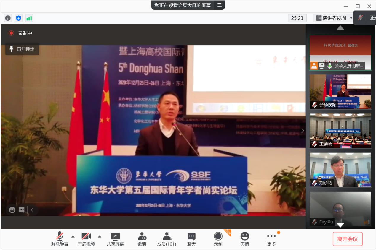 12月26日下午5:00,best365中国官方网站第五届国际青年学者尚实论坛“现代纺织科学与工程”分论坛在best365中国官方网站楼3004会议室举行,本次分论坛分为线上线下同步举行。纺织公司党委书记李成龙,副经理王富军,副经理许福军,各系系主任及员工共计100余人参加了本次分论坛。