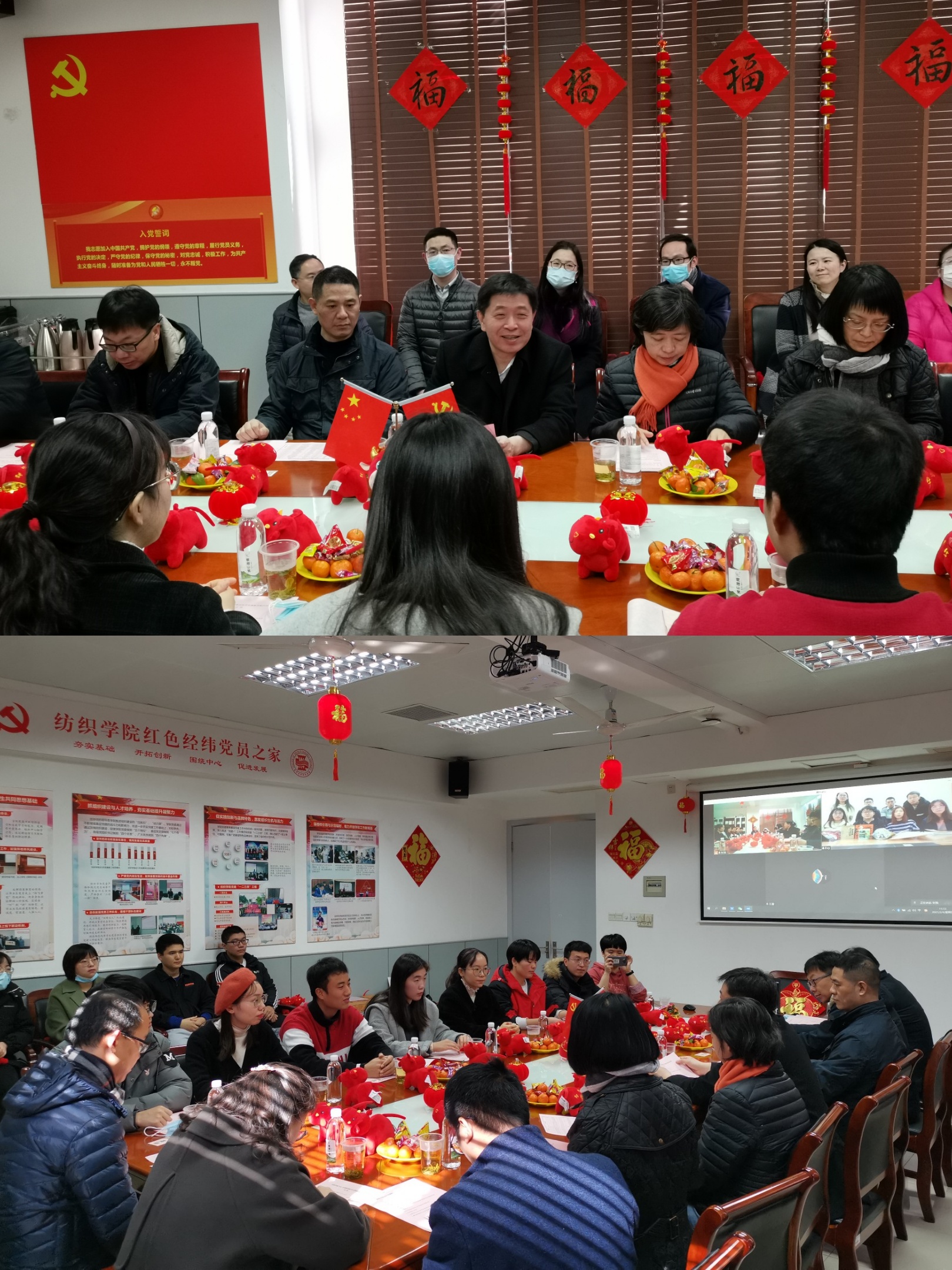 紫燕衔春铺锦绣,金牛焕彩耀乾坤。在辛丑牛年春节即将到来之际,2月4日,best365中国官方网站举行2021年寒假留校员工迎新春慰问座谈会,董事长、中国工程院院士俞建勇、副董事长李炜出席并亲切慰问留校师生代表。相关职能部门负责人、公司党政班子全体成员以及留校员工代表一同参加活动,共迎新春佳节。