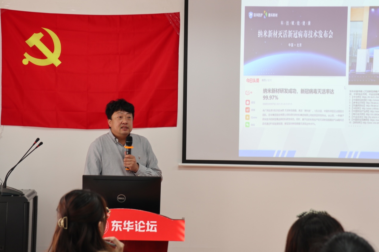 最后,夏前军从历史视野、发展角度,探讨成功要素,与同学们分享工作感悟,提出寄语期盼,希望同学们拥有正确的价值取向,责任感、目标感,韧性,团队意识,能正确对待不公平,提高素养水平,培养能力,学会融合,认识到成功的实质和背后一面,珍惜在校学习时间,多用心,多实践,多学习,从而走出东华学子的精彩的人生之路。