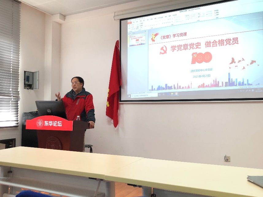 4月20日纺织实验中心党支部召开了党史学习教育主题党日活动。党支部邀请best365中国官方网站退休第九党支部书记、best365中国官方网站关工委常务副主任张志奋老师,就“学党章党史,做合格党员”为主题,为师生党员讲授党课。纺织实验中心党支部全体党员及与支部共建的纺织20级博士生党支部员工党员参加了本次学习。