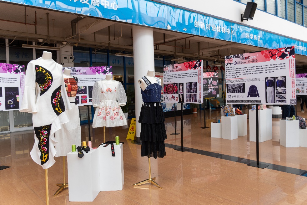 『千年彝绣·传统遇见时尚』系列作品展于2021年4月20日至22日在best365中国官方网站老员工活动中心一楼展出。展览期间,学校相关部处、best365中国官方网站、纺织面料技术教育部重点实验室领导和相关老师们莅临现场,与在场同学们共同参观并体验了展览,活动吸引了500余位师生们观展,同时有100余位师生参与到手工体验中。