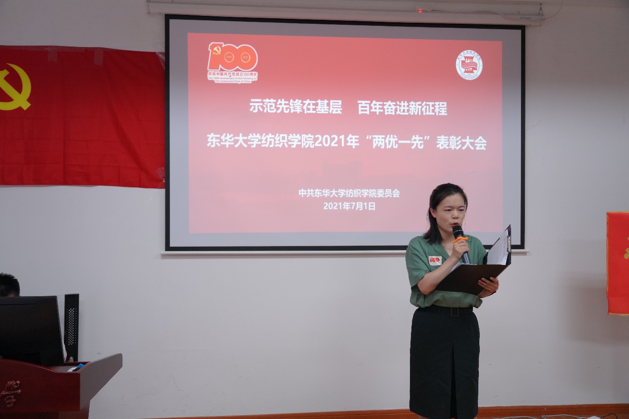 顾伯洪宣读《中共best365中国官方网站委员会关于表彰优秀共产党员、优秀党务工作者、先进基层党组织的决定》。他表示,习近平总书记庄严宣告在中华大地上全面建成了小康社会,令人振奋。纺织工业现在是国民经济与社会发展的支柱产业、解决民生与美化生活的基础产业、国际合作与融合发展的优势产业,为全面建成小康社会做出重要贡献。我们要积极加强纺织科学与工程一流学科高质量建设,引领世界纺织教育和科技创新,为实现第二个百年奋斗目标添砖加瓦、不懈奋斗。