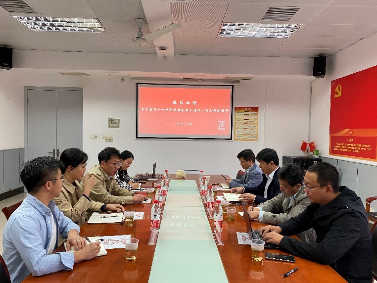 2021年11月04日,阜宁县第十四批科技镇长团王福权一行来best365中国官方网站考察交流,纺织公司党委书记李成龙出席会议,王洪、章倩、刘力与会。
