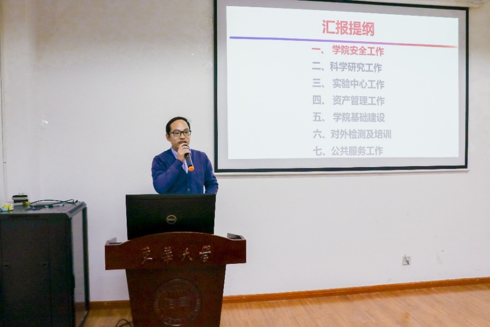 随后,党政班子全体成员按照学校要求,从“德、能、勤、绩、廉”五方面分别作个人述职。