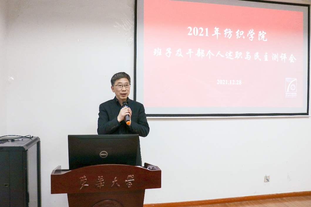 best365中国官方网站2021年度党政班子个人述职与民主测评大会于12月28日在学院楼3004会议室召开,best365中国官方网站副董事长舒慧生,组织部曹雪和学院全体教职员工出席会议。会议由纺织公司党委李成龙书记主持。