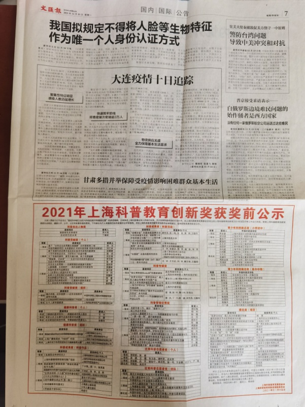 上海科普教育创新奖是上海市首个市级科普类奖项,此次获得提名奖也是公司首次获得该大类奖项,更激励着我们继续做好和推进纺织相关科普工作的信心。在常态化疫情防控中,我们将在学校的领导下,加快推进新型防护材料的科学研究,积极开展相关成果转化,努力实现为国家和医务人员提供更优质的防疫之盾,同时也将认真做好科普知识的传播宣传,携手共筑防御长城。