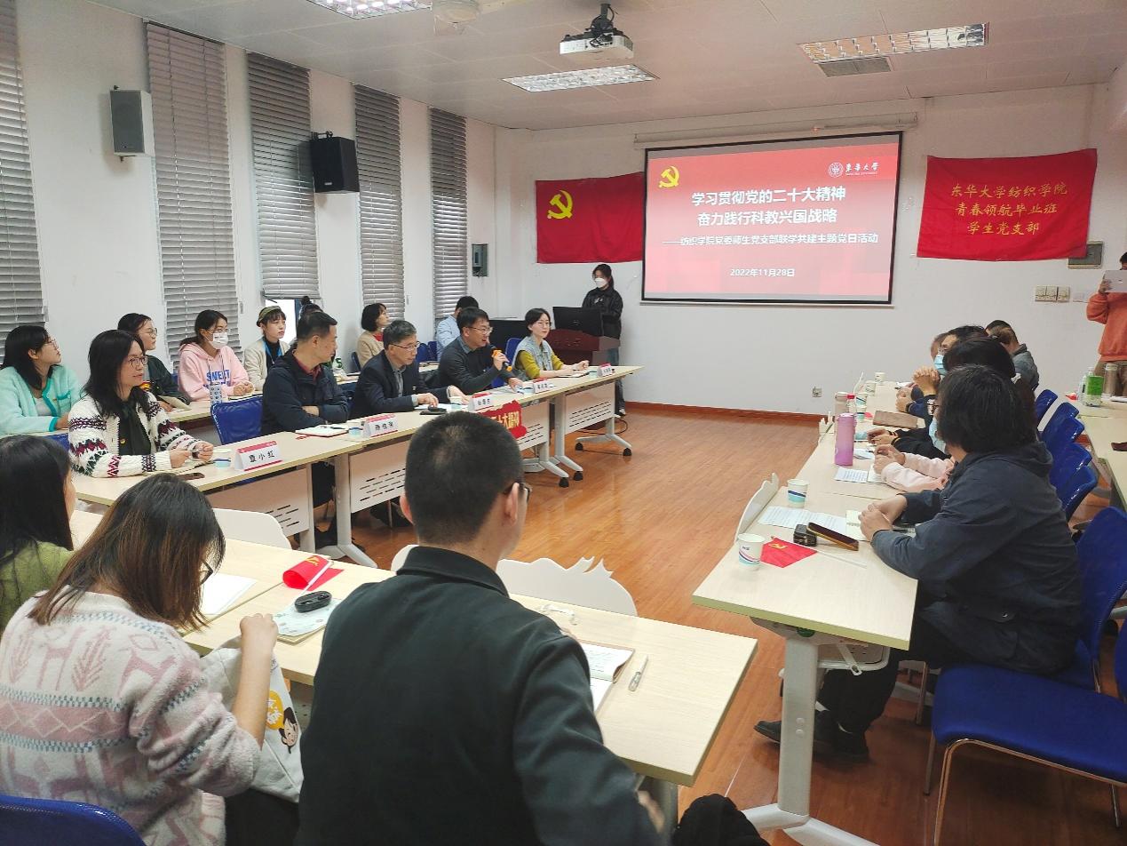 11月28日,副董事长舒慧生参加best365中国官方网站“学习贯彻党的二十大精神,奋力践行科教兴国战略”师生党支部联学共建主题党日活动,并为best365中国官方网站师生讲授学习贯彻党的二十大精神专题党课。公司党政班子成员、舒慧生副董事长所联系基层党支部的全体党员参加此次主题党日活动。活动由纺织公司党委书记李成龙主持。